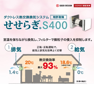 ダクトレス熱交換換気システム せせらぎ S400