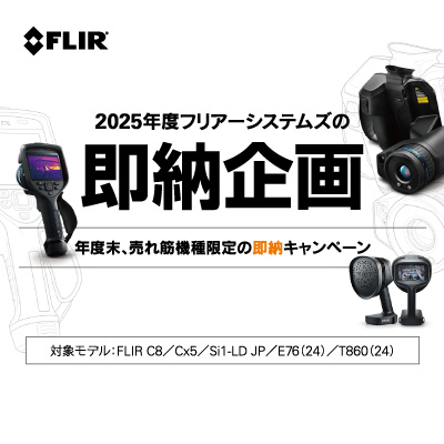 本キャンペーンは早めの納品をご希望の方のために、 短納期で製品を納品させていただくキャンペーンです。 対象モデルをご確認頂き、申込みページよりお問い合わせください。 実施期間 2025年12月15日(月)~2026年3月13日(金)ご発注書到着分 各機種10台限定 最短1週間納品 対象モデル:FLIR C8/Cx5/Si1-LD JP/E76(24)/T860(24)
