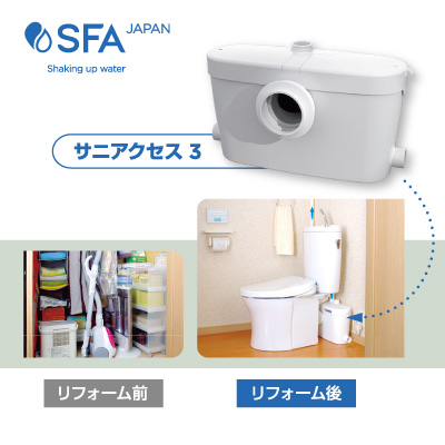 SFAポンプがあれば、配管の勾配が取れない場所でも水まわり設備を設置可能。